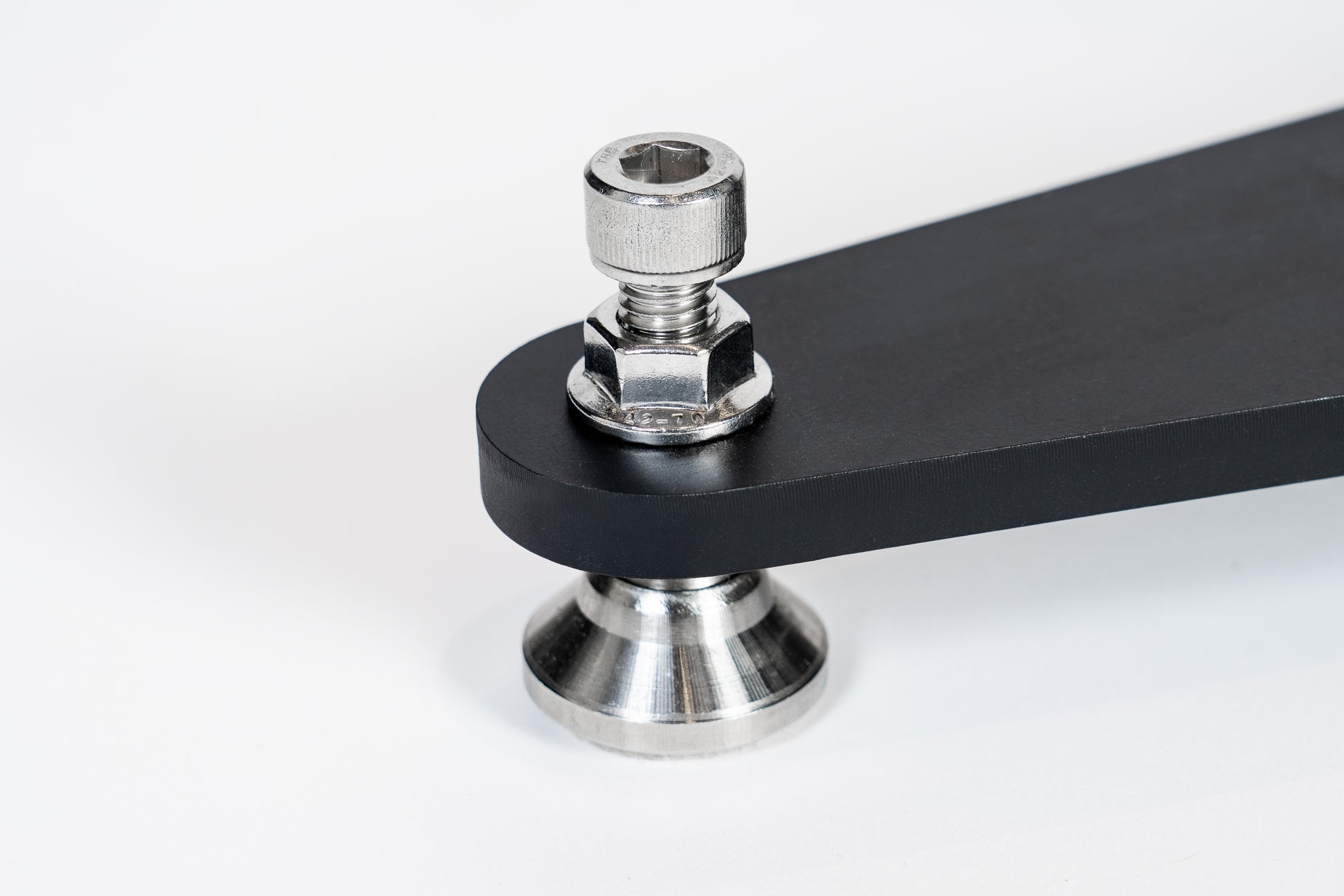 We engineered a heavy steel base plate to provide a stable foundation for the stand and since that wasn’t enough to satisfy our feature list we also developed our own proprietary vibration isolation and damping system using high-performance Sylomer isolators. This isolation system eliminates energy transmission from your speakers into the floor or desk and helps improve imaging clarity, bass response, and removes structure-borne crosstalk distortion.