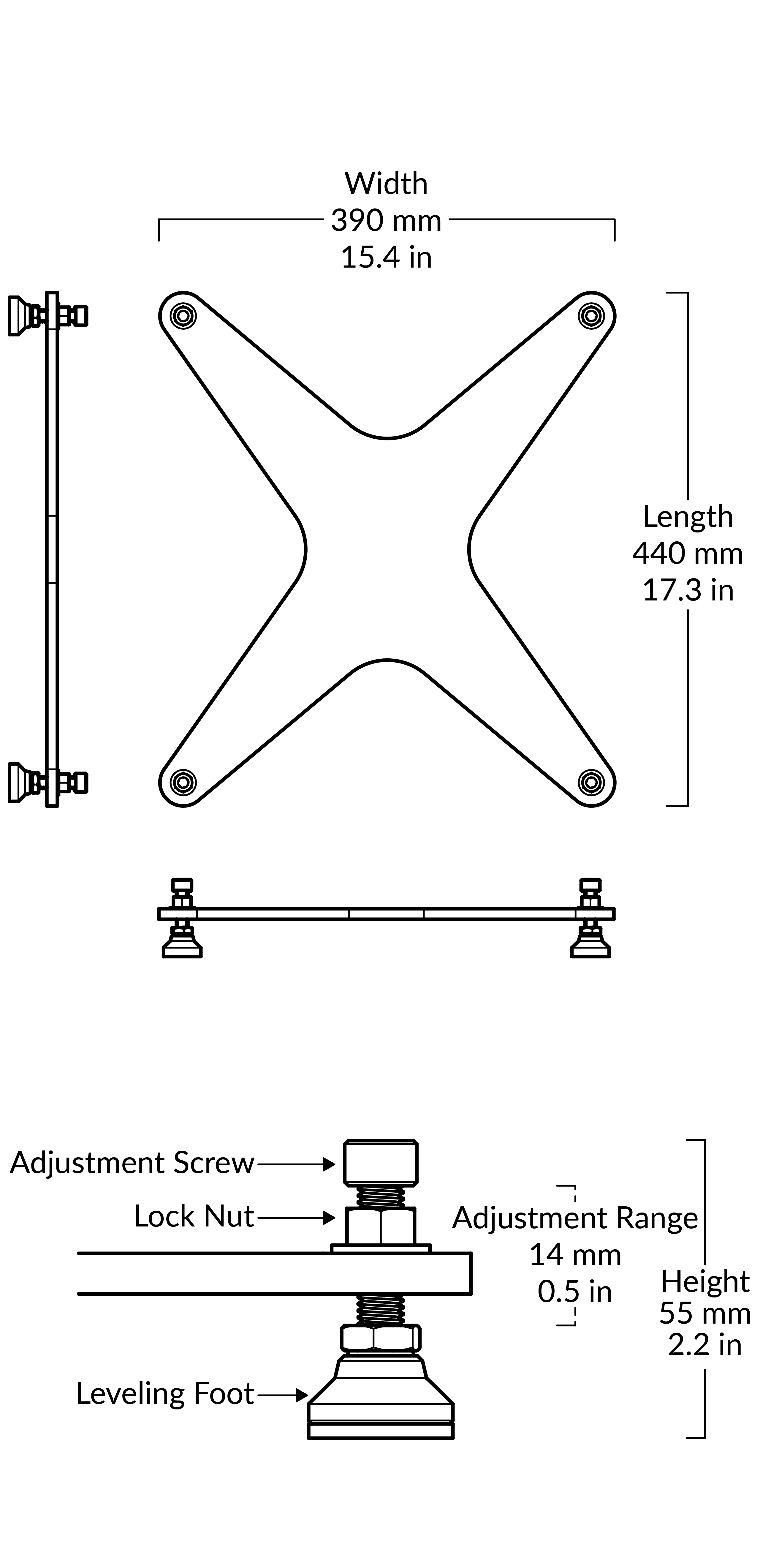 Base Plate: - 390 mm x 440 mm (15.4” x 17.3”)