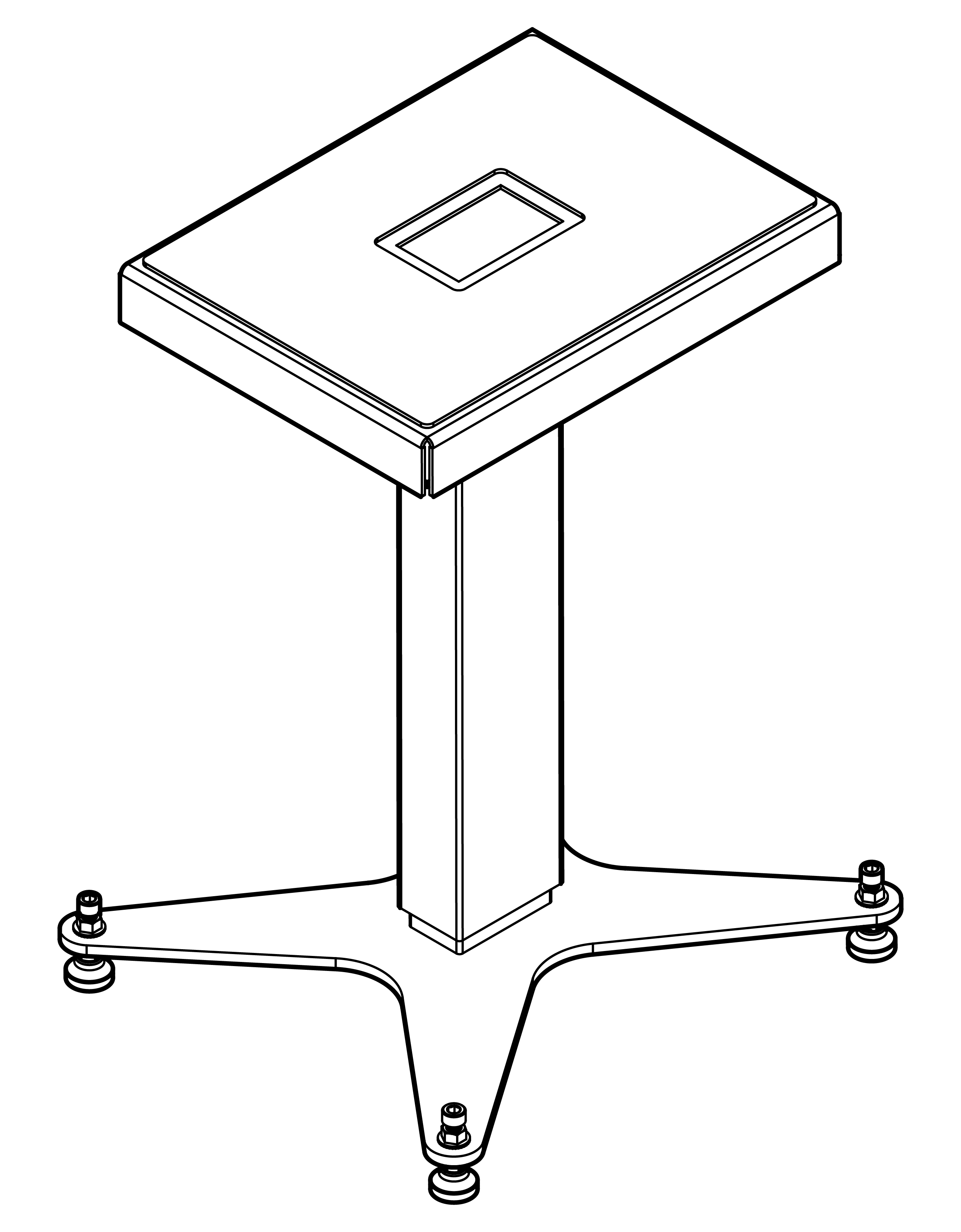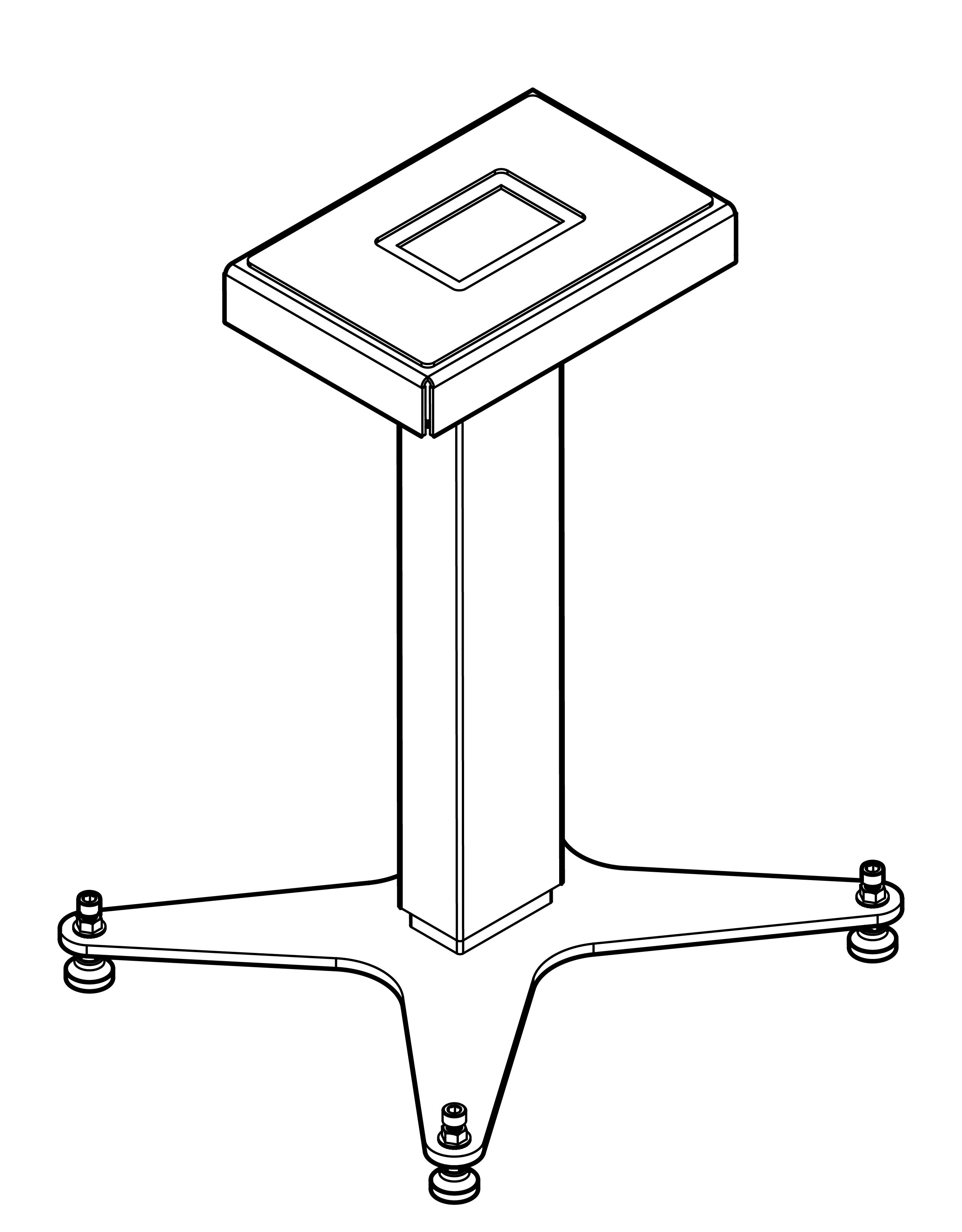 - Four precision machined articulating leveling feet provide easy adjustment from the top of the stand, ensuring that uneven floors won’t compromise stability.