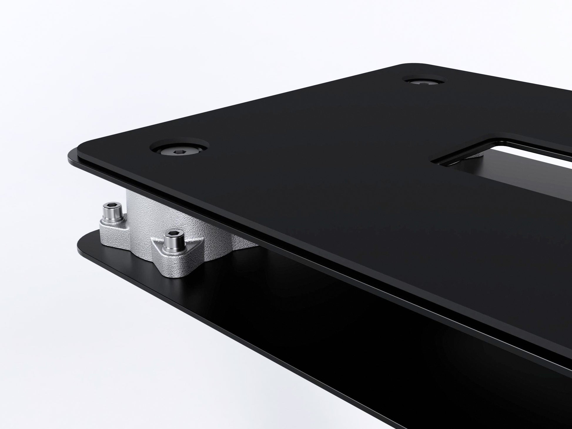We engineered a heavy steel base plate to provide a stable foundation for the stand and since that wasn’t enough to satisfy our feature list we also developed our own proprietary vibration isolation and damping system using high-performance Sylomer isolators. This isolation system eliminates energy transmission from your speakers into the floor or desk and helps improve imaging clarity, bass response, and removes structure-borne crosstalk distortion.