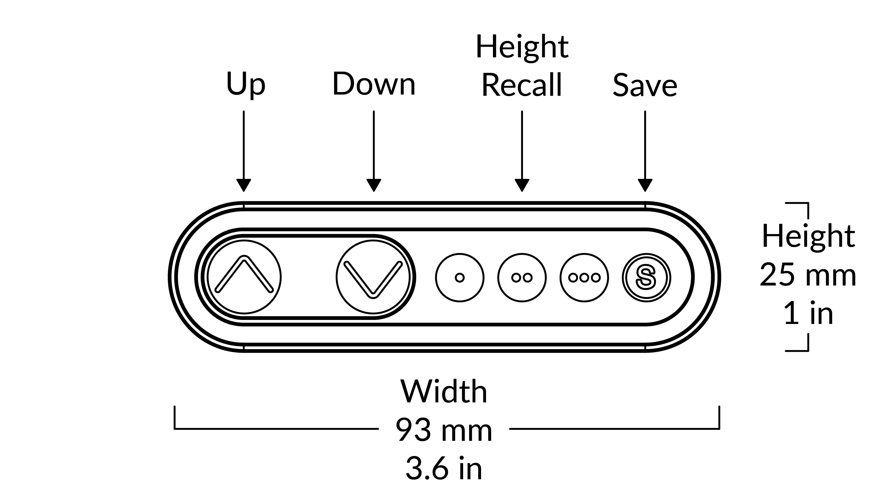 LIFT Mk2's wired controller provides easy stand height adjustment. It can be placed on a work surface or mounted to the underside of a desk with the included bracket. The controller provides up/down adjustment and can store and recall three user-defined height positions.