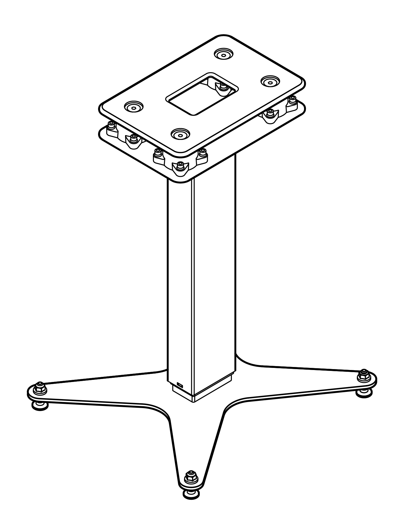 Each LIFT comes with one base plate with four lockable leveling feet, one motorized lifting column, and one speaker platform assembly. Eight included M6 bolts and one T-handled hex key wrench are all that are needed to fully assemble LIFT.